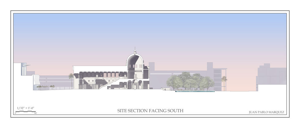 I chose to design a Museum of Latin-American Art on Miami Beach, because it would make that final year at college much more enjoyable knowing that my final culmination is a reflection of who I am and where I come from. First, the typology was one of my favorites to work on in school as it one of the grandest expressions of architecture that a society can produce, and on a scale difficult to rival. The museum's subject is of Latin-American art, which could express not only my Colombian background but also that of all my friends and extended family back home; Cuban, Venezuelan, Puerto Rican, Argentinian, Ecuadorian, Nicaraguan, etc. And finally Miami Beach, full of its Spanish and Art Deco architecture that I grew accustomed to, but also where I grew up. The last piece to really tie it together was exploring resiliency in design. Since I can remember Miami Beach suffered from flooding either because of heavy rains, king tides, or hurricanes, and now with sea level on the rise, Buildings on these barrier islands are going to have to be built in response to the challenges posed.